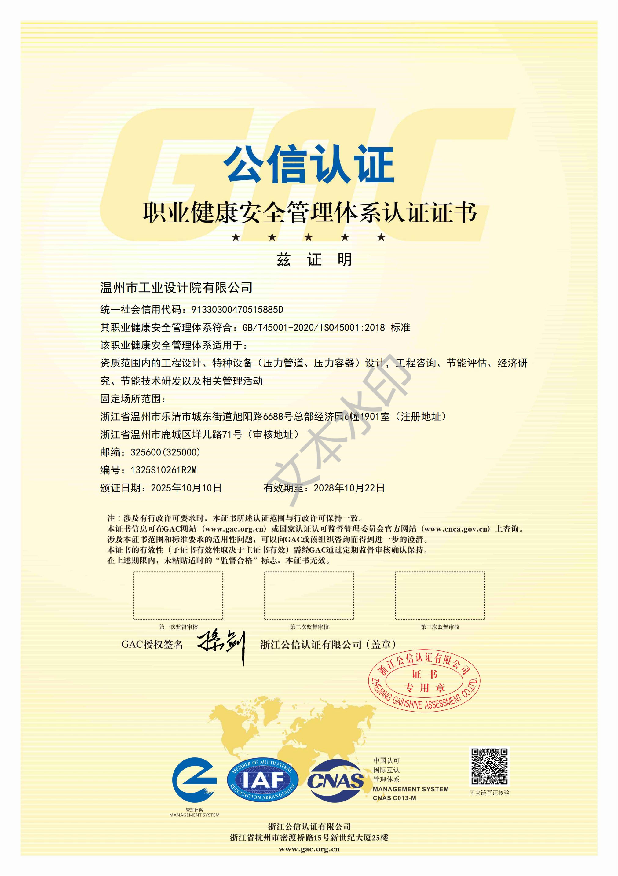 職業(yè)健康安全管理體系認(rèn)證證書